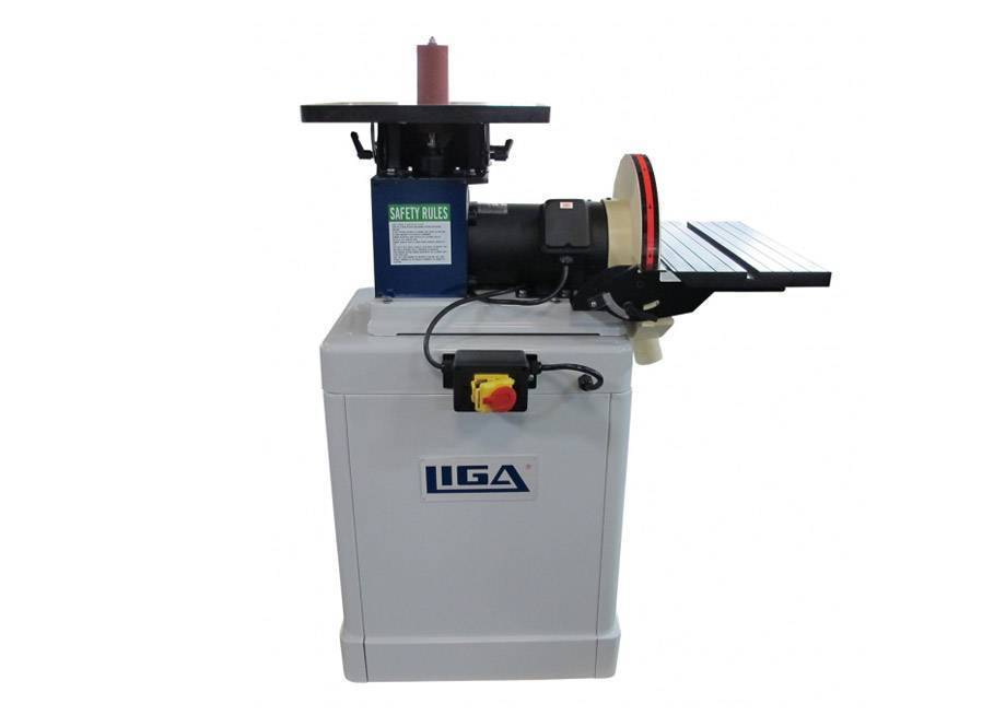 Два шлифовальных узла позволяют шлифовать прямолинейные и криволинейные заготовки; - Наклон рабочего стола: