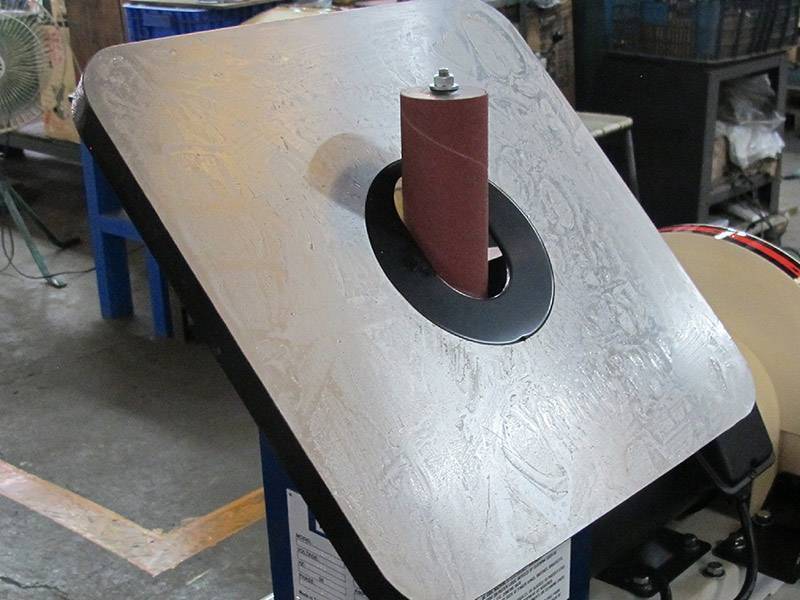 Наклон рабочего стола у шлифовального круга позволяет обрабатывать торцы заготовок распиленных под углом 0-45°; - Шлифовальные валы: