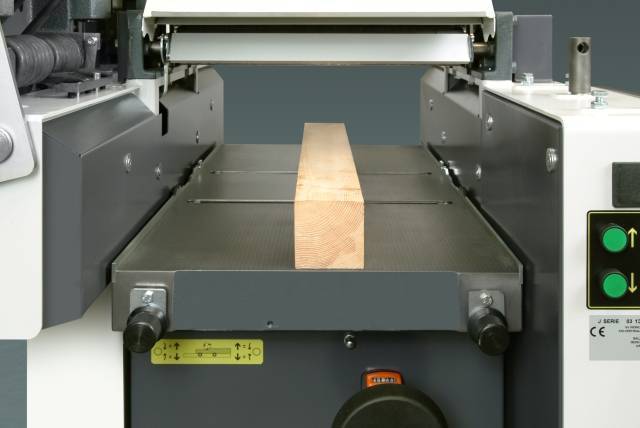 - Два чугунных фуговальных стола, установленных на точных направляющих, с возможностью регулировки подъема и опускания;