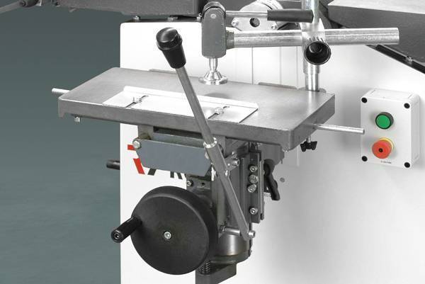 - регулировка подъема и опускания фуговальных столов при помощи рычага;