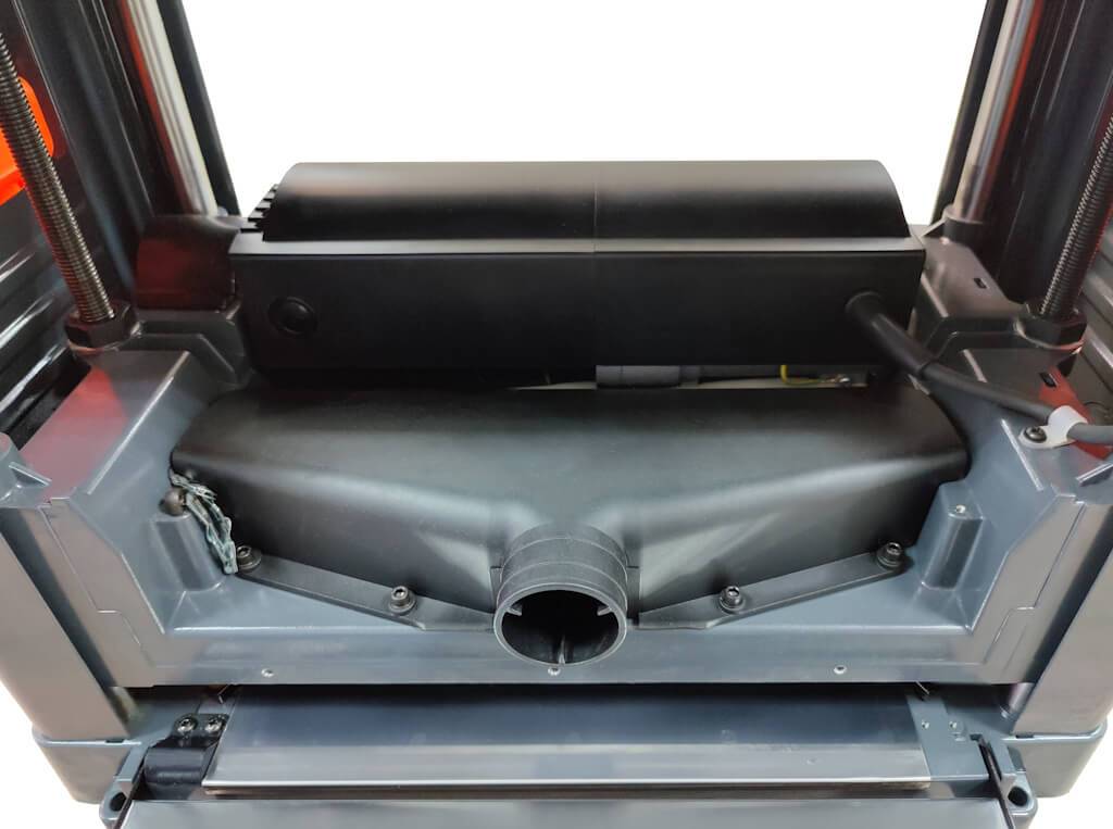 Наличие кожуха и универсального адаптера позволяет подключать к станку устройство аспирации для удаления опилок. Внешний диаметр патрубка составляет 50 мм, внутренний 43 мм.