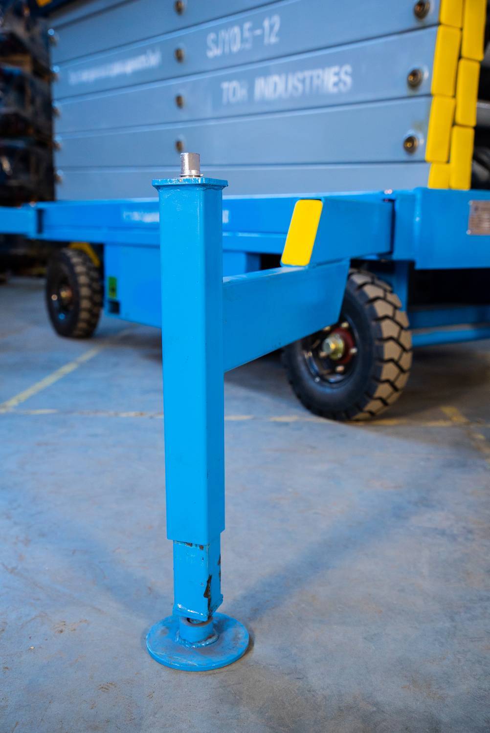 Ножничный механизм выполнен из прочной трубы квадратного сечения, что добавляет конструкции дополнительную прочность. 4 выдвигающиеся опоры надежно фиксируют конструкцию на месте и обеспечивают устойчивость.