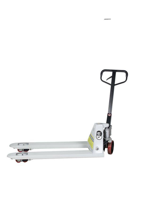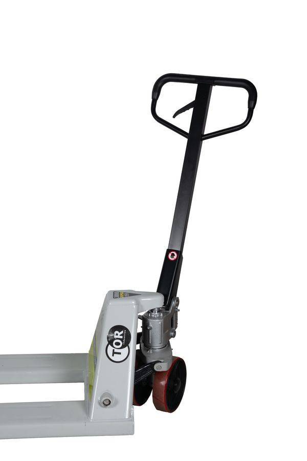 Тележка гидравлическая TOR RHP(BF)- премиальная модель с разборным гидроузлом, укрепленными вилами для интенсивной работы на складах с высоким товарооборотом.