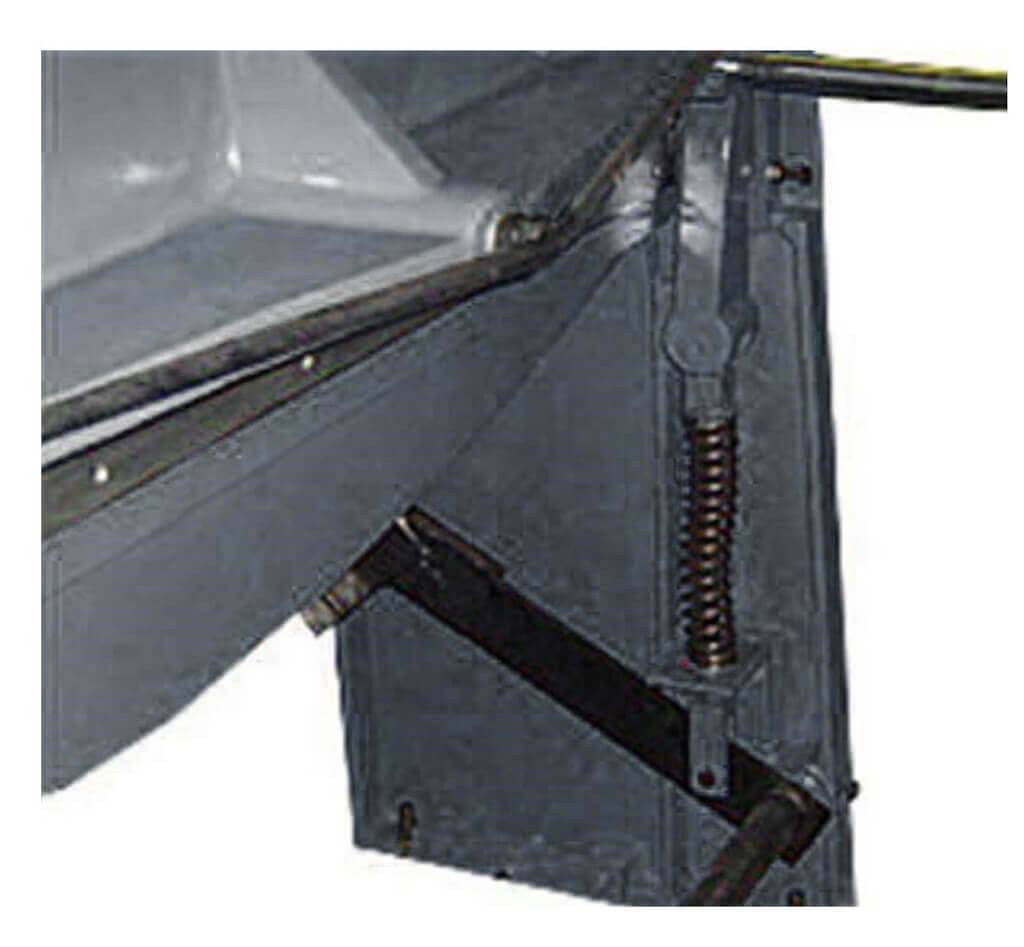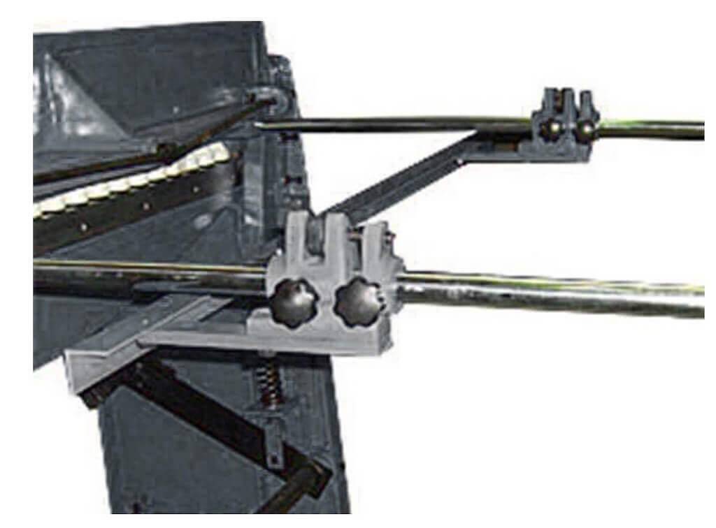 Подъем балки с верхним ножом осуществляется пружинами. Простота конструкции обеспечивает долговечность и неприхотливость станка. Для более точного расположения листа на рабочем столе станка, предусмотрены передние поддерживающие штанги, по которым перемещается передний упор. Этот элемент удобно использовать при подаче полосы листа из рулона в гильотину с тыльной стороны.