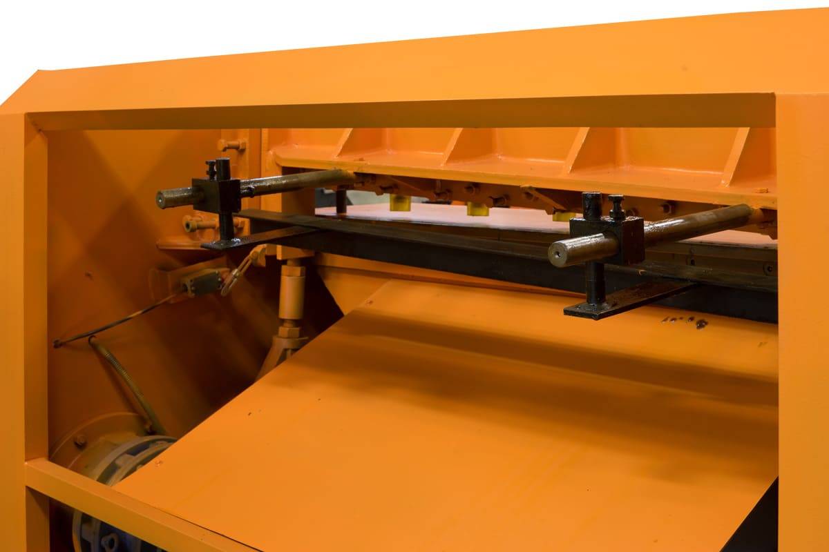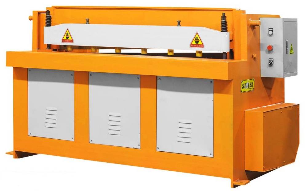 Для удержания материала во время реза, гильотины Stalex SBJB имеют автоматический прижим для фиксации заготовки, который снижает эффект вытягивания материала из под ножа и рез получается ровнее.