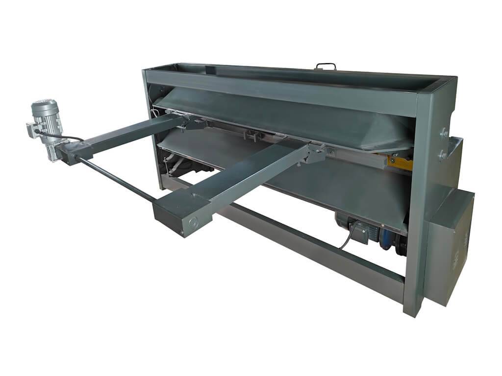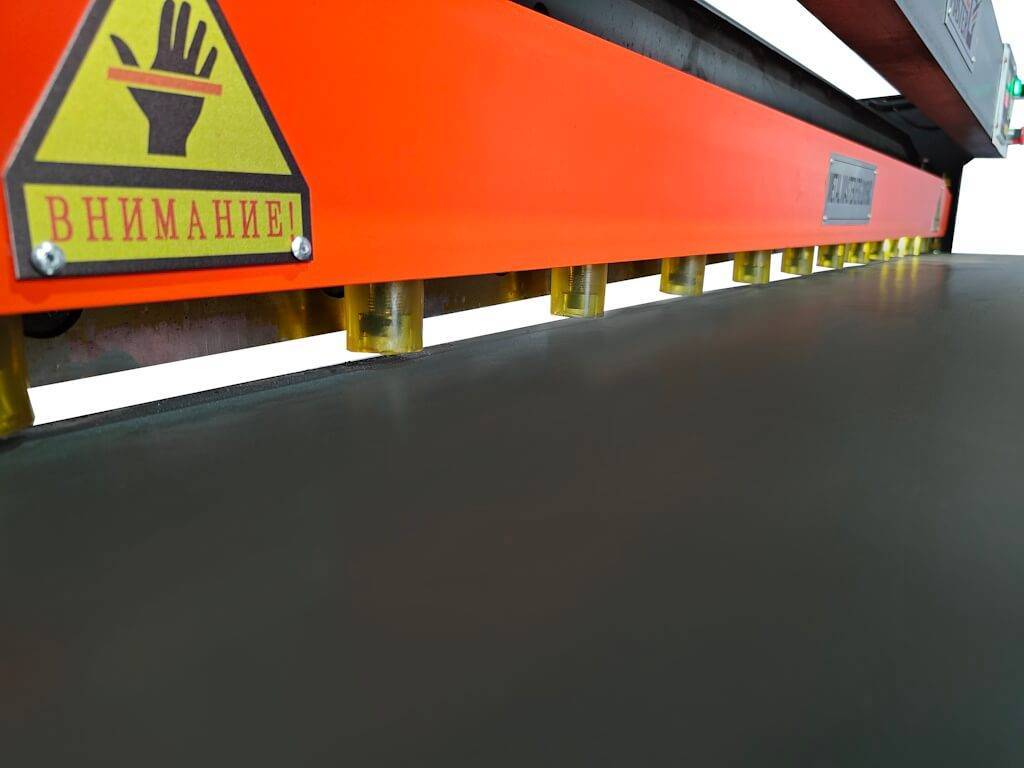 Приводной вал расположен под рабочим столом гильотины. Это обеспечивает компактную конструкцию и плавную работу станка.