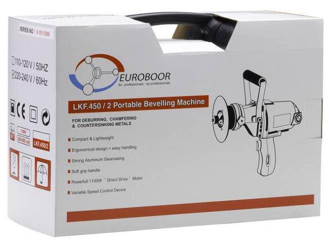 Благодаря электронной регулировки скорости, эта машина подходит не только для обыкновенной стали, но и для таких материалов как алюминий. Машина оснащена мощным 1100Вт мотором, который имеет функцию «мягкого старта». Машина LKF.450/2 стандартно комплектуется 45° головкой с 2мя высококачественными режущими пластинами, каждая из которых имеет 3 режущих стороны (так же возможно заказать LKF.450/2 с фрезерной головкой 30° или радиусной R-2,5мм).