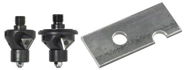 - Одна фрезерная головка (30° или 45° или радиусной R-2,5мм), с установленными на ней 2мя режущими пластинами (твердосплавная режущая пластина для головки 30°/45° LKS.20)