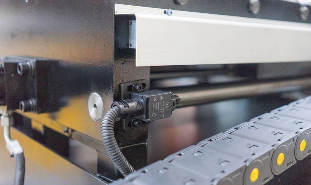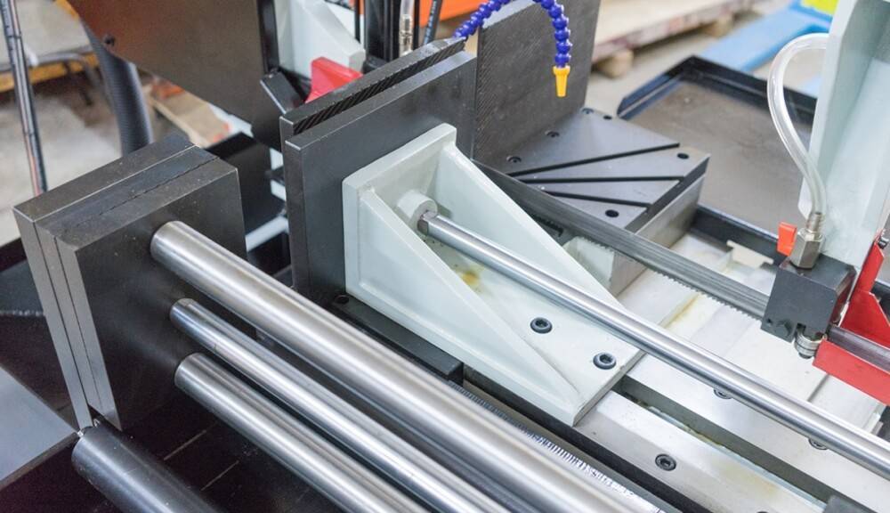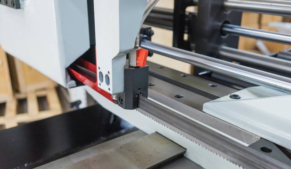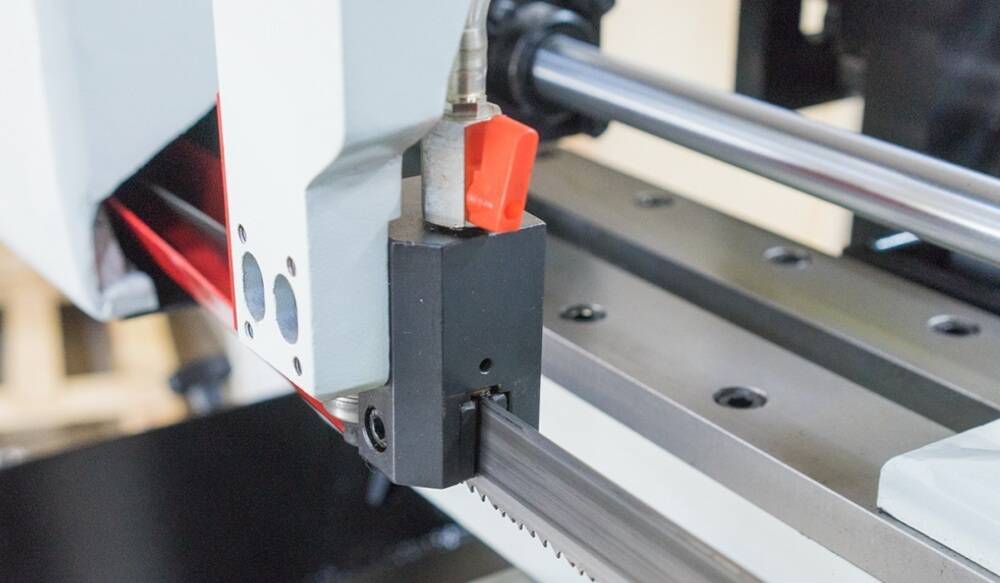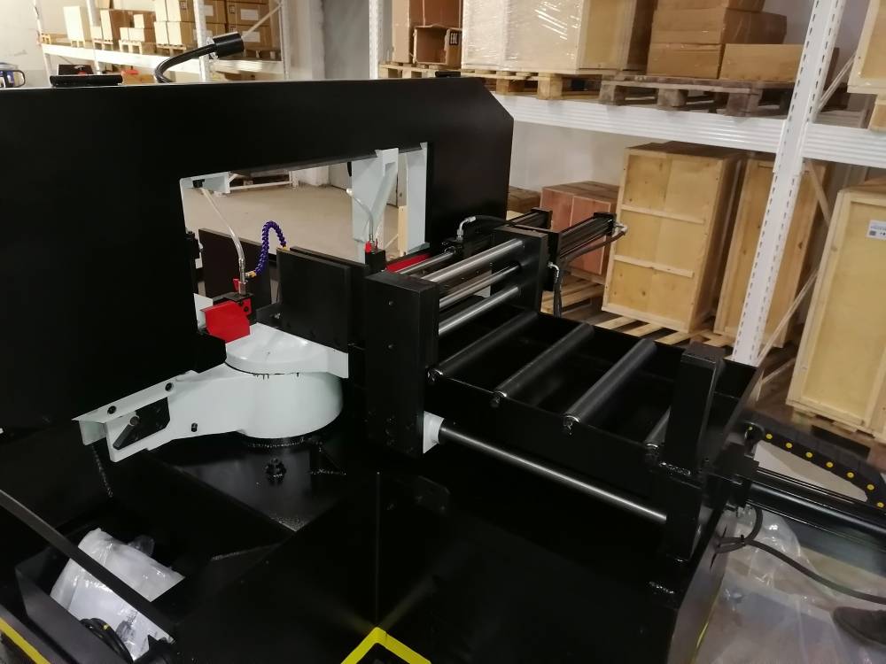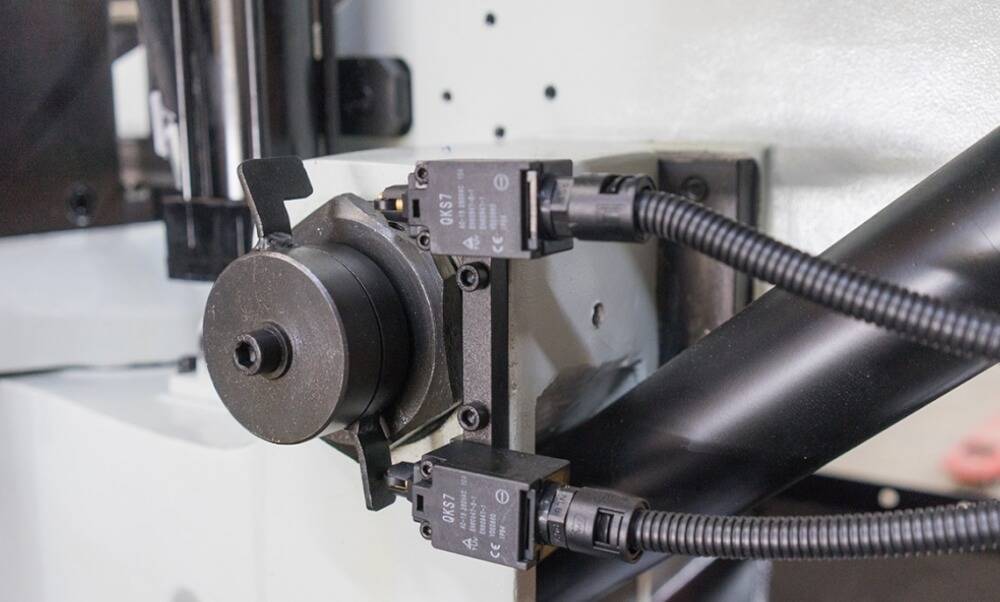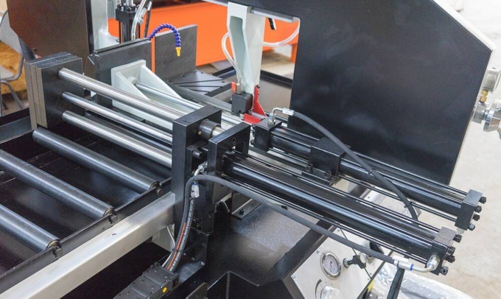 - Длина подачи заготовки контролируется автоматически c ЧПУ (СNC), движение происходит по линейным направляющим гарантирующим точность подачи.