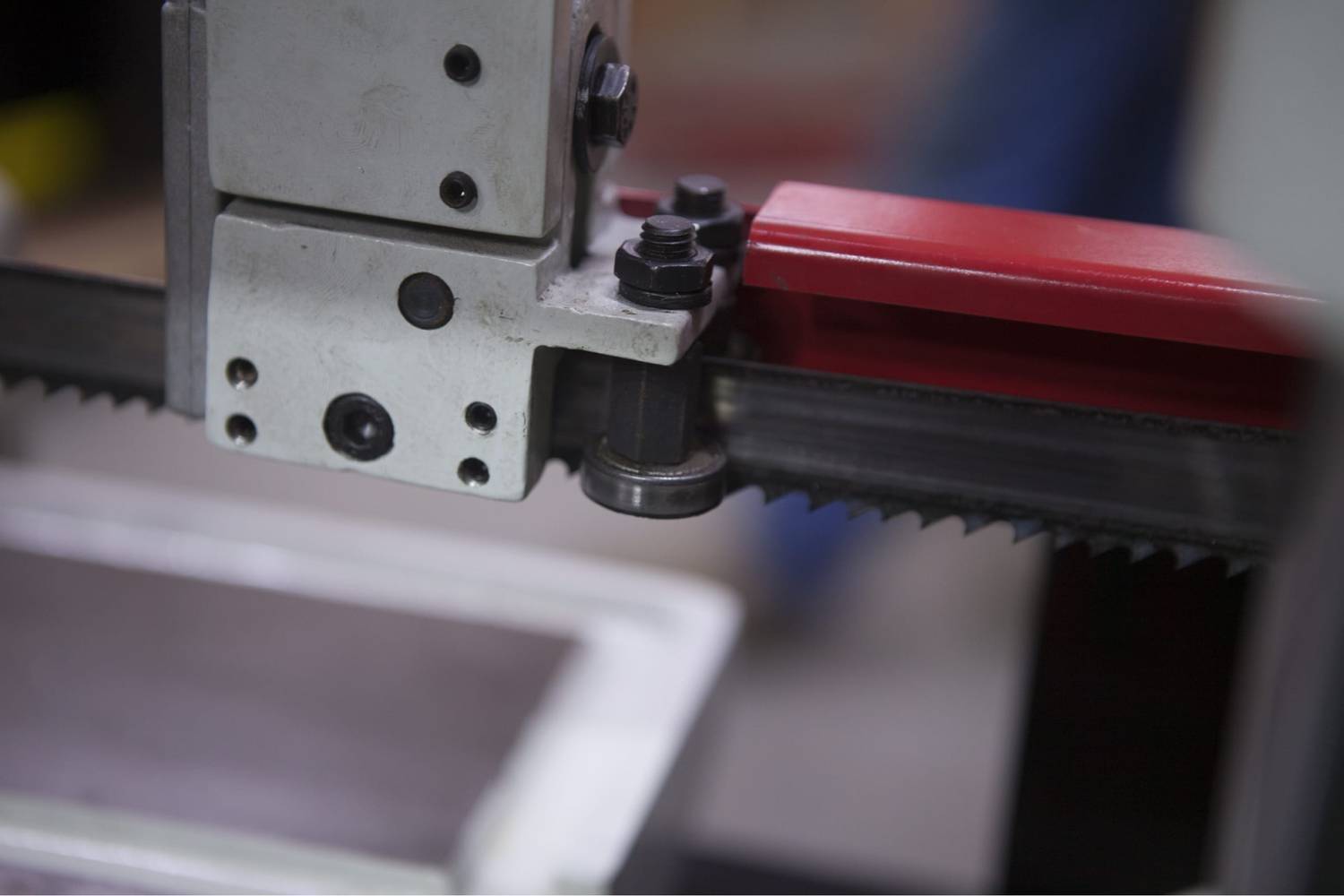 Двухстоечные ленточнопильные станки имеют 2 вертикальные стойки (колонны) большого диаметра, по которым вверх-вниз перемещается горизонтальная пильная рама.