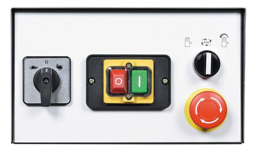 Две скорости вращения полотна, плавная регулировка скорости опускания пильной рамы. Все эти настройки позволят достичь высокого качества среза на заготовки. Станок может работать, как в ручном режиме, так и в режиме автоматического пиления с последующим отключением вращения полотна после окончания реза. Вам останется только поднять пильную раму.