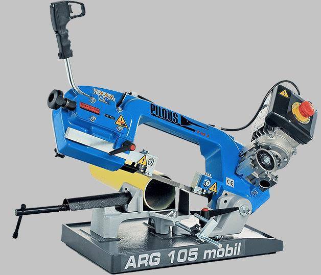 ARG 105 Mobil Портативная модель, предназначенная для небольших мастерских, имеющих потребность в разовых резах. Несмотря на небольшие размеры, модель отличается большой жесткостью. Как и у более крупных станков рама изготовлена из литого чугуна и снабжена поворотным устройством. Благодаря этим особенностям станок позволяет резать заготовки под заданным углом. Точности станка достаточно для изготовления различных сварных конструкций без применения дополнительных операций обработки поверхностей реза. Скорость пильного полотна – 75 м/мин.