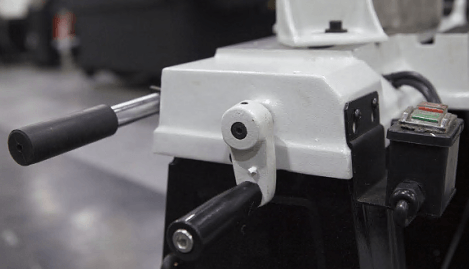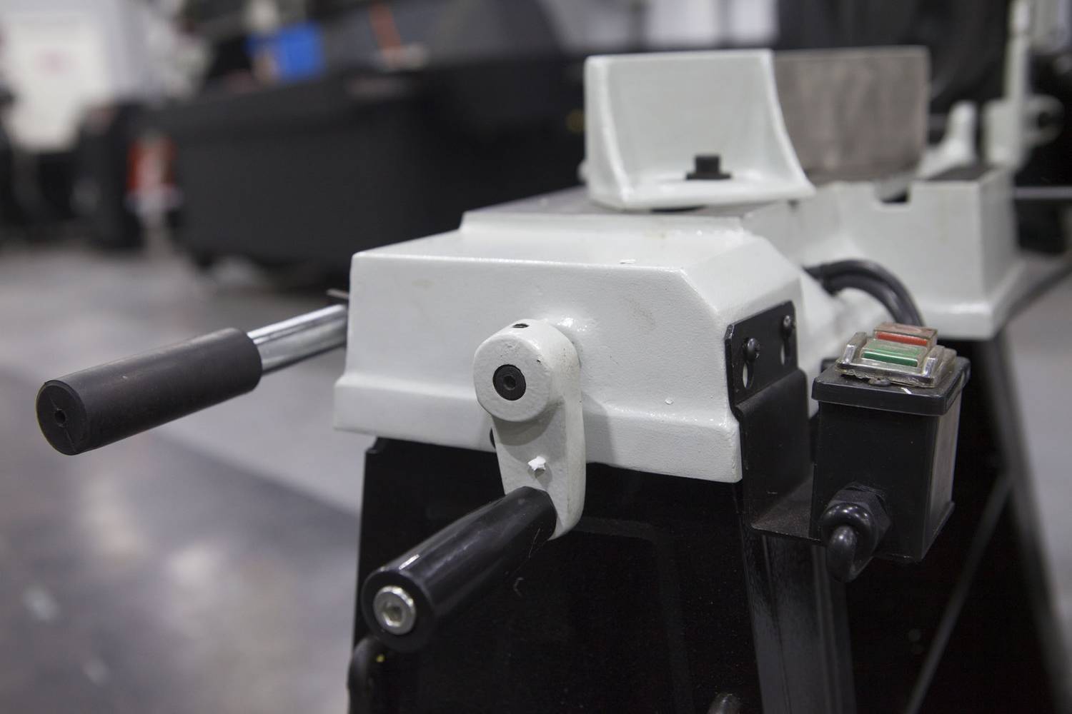 Рычаг натяжения рамы станка и маховик вращения тисков |