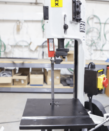Пильную раму возможно установить в вертикальном положении - для резки небольших изделий из дерева, пластмассы и других заготовок из мягких материалов (для которых не требуется фиксация в тисках во время пиления) при этом станок обязательно должен крепиться к полу.