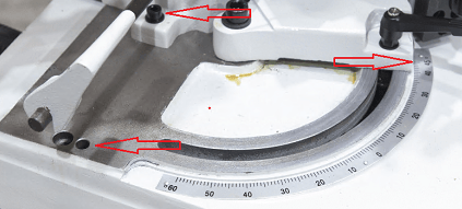 Удобная, быстро перестраиваемая система регулировки позволяет с минимальными потерями времени переходить на пиление различных размеров под разными углами -45° 0° +45° +60° (для работы с заготовками под углом минус 45° необходимо сместить тиски).