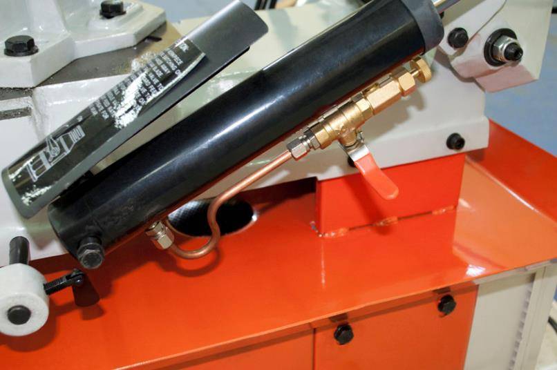 Пила опускается под собственным весом, станок оборудован дросселируемым гидравлическим цилиндрами подач, который позволяет автоматически подстраивать скорость опускания пильной рамы в зависимости от профиля заготовки, что обеспечивает оптимальные режимы распила.