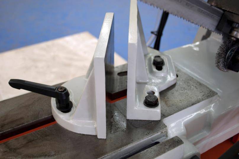 Станок Stalex BS-912G имеет поворот губок тисков, для пиления под углом необходимо изменять угол установки тисков, привод зубчатый. Зажим заготовки осуществляется тисками вручную, подача заготовки - также вручную. Мобильность станков позволяет использовать их на производстве непосредственно там, где это необходимо. Станки находят широкое применение в серийном и мелкосерийном производстве. Система СОЖ в стандартной комплектации.