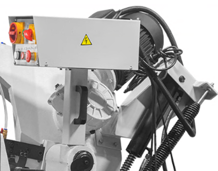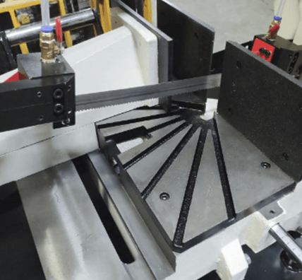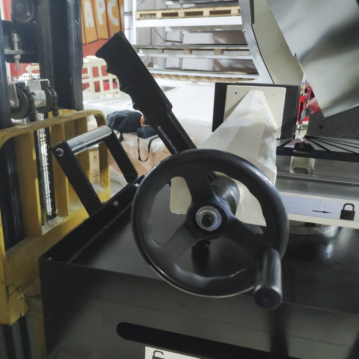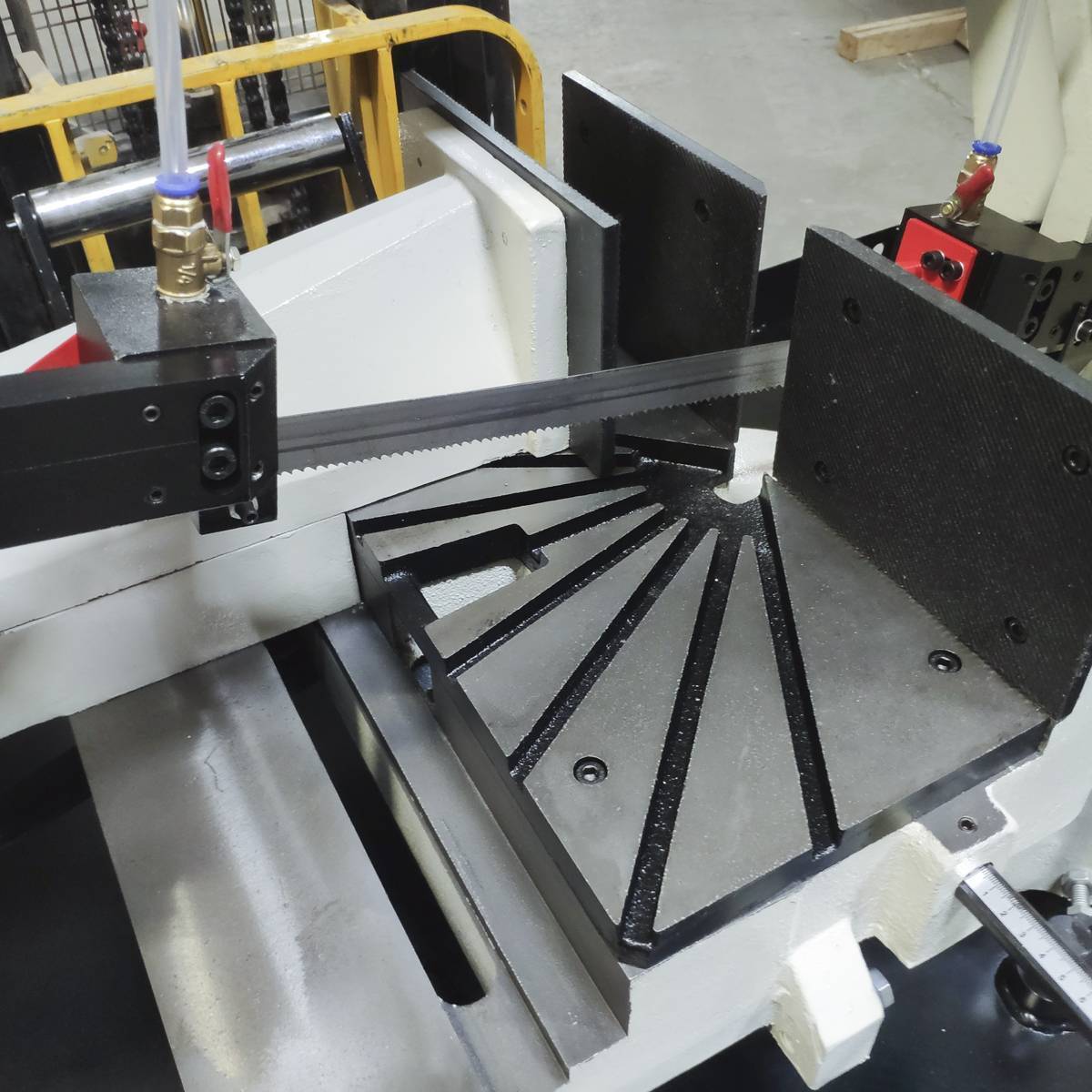 В рабочей зоне резания полотно точно ведется двумя направляющими головками. Станок с возможностью поворота корпуса пилы от -45° 0° до +60°, предназначен для пиления заготовок, под различными углами и при частой смене угла пила.