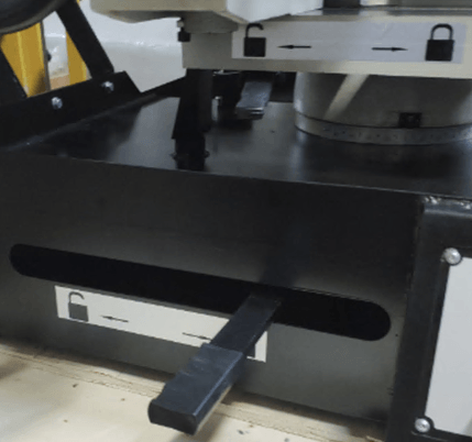 Рычаг фиксации рамы после поворота корпуса пилы |