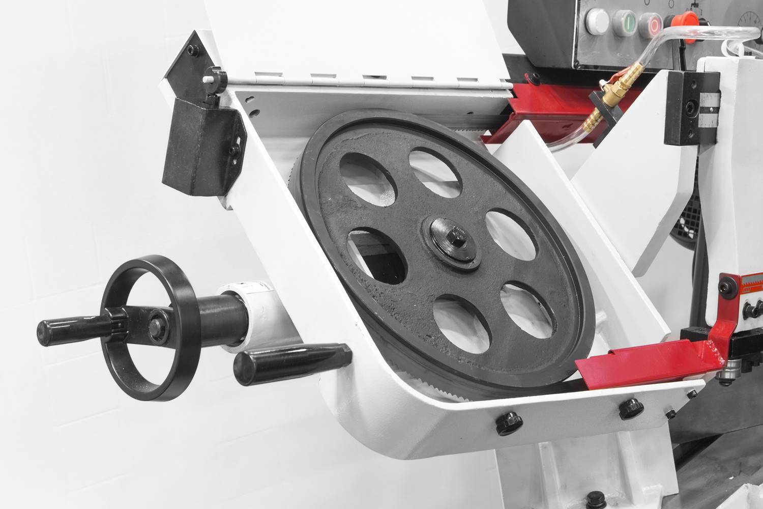 - Простота эксплуатации: маховик со встроенной шкалой позволяет быстро и легко производить натяжение пильной ленты.