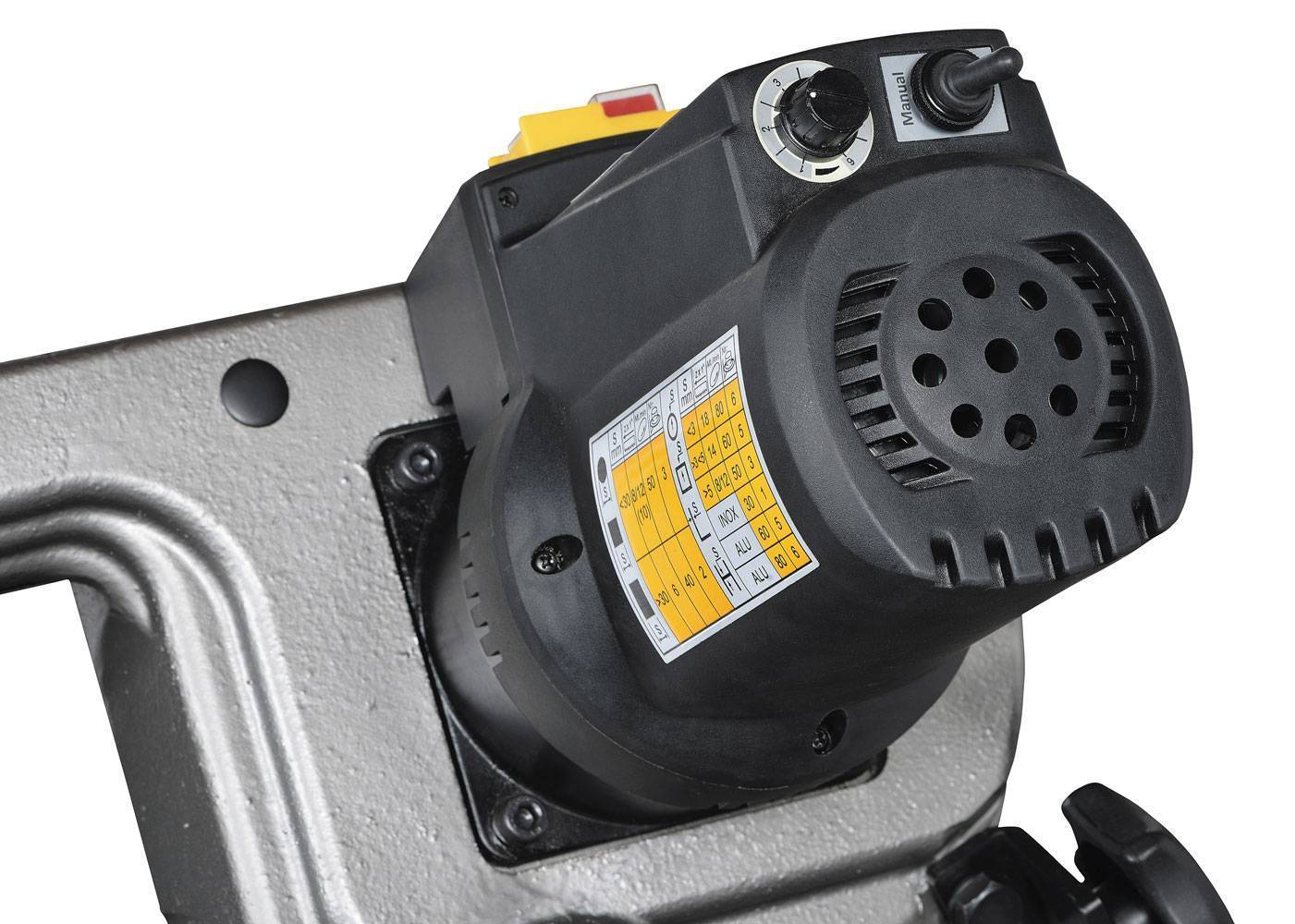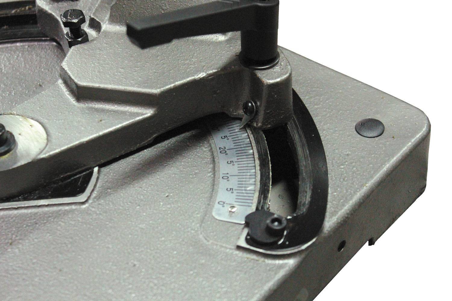 - Плавная регулировка скорости вращения полотна позволит подобрать оптимальный режим резания, а угол поворота пильной рамы на 60 градусов позволит увеличить гамму обрабатываемых изделий