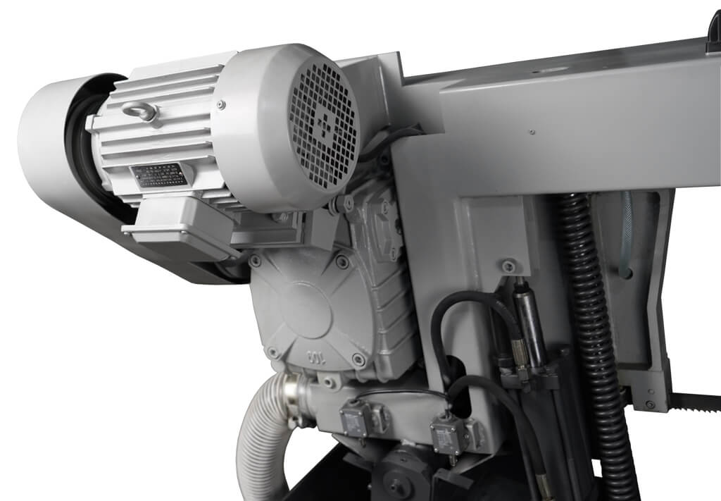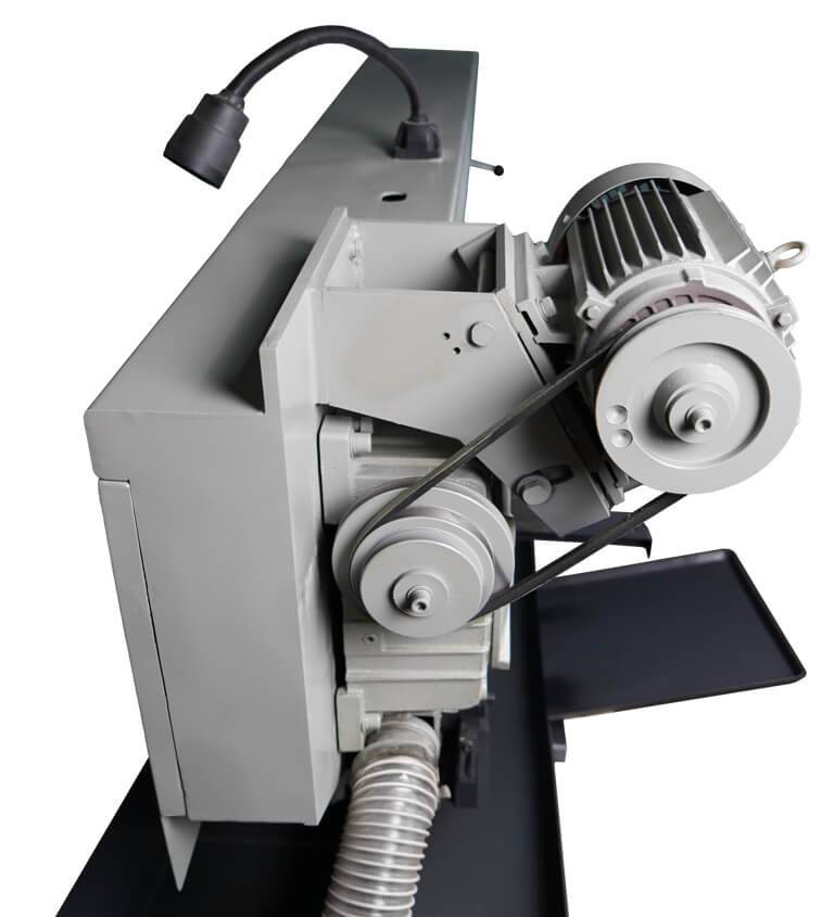 Регулировка скорости осуществляется с помощью перекидывания ремней в блоке ременных шкивов. Станок имеет три скорости резания 40/60/80 м\мин