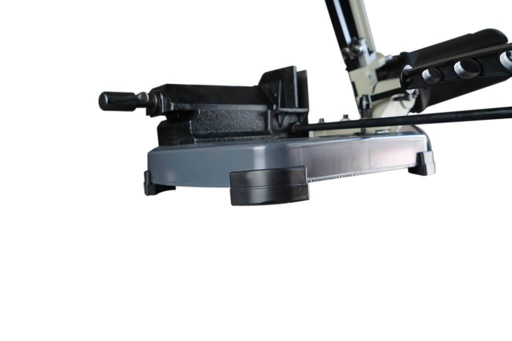 Пильная рама станка, изготовленная из серого чугуна, установлена на надежное стальное основание с прорезиненными ножками, которые защищают станок от скольжения по поверхности.
