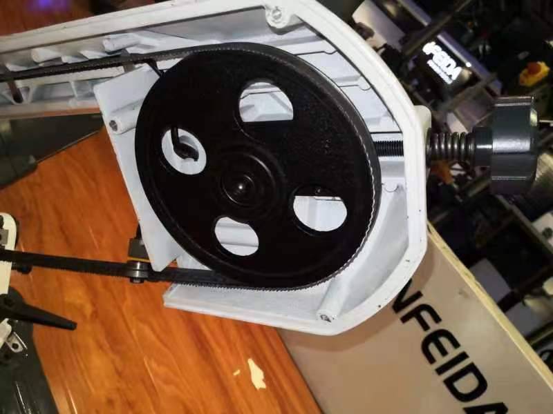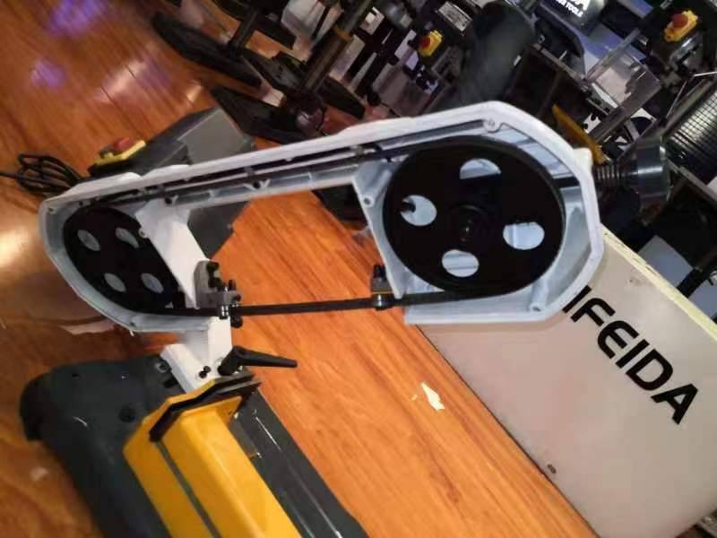 - Движение ленты осуществляется через мотор с клиноременной передачей – 3 режимами скорости резания (20 / 29 / 50 м/мин).