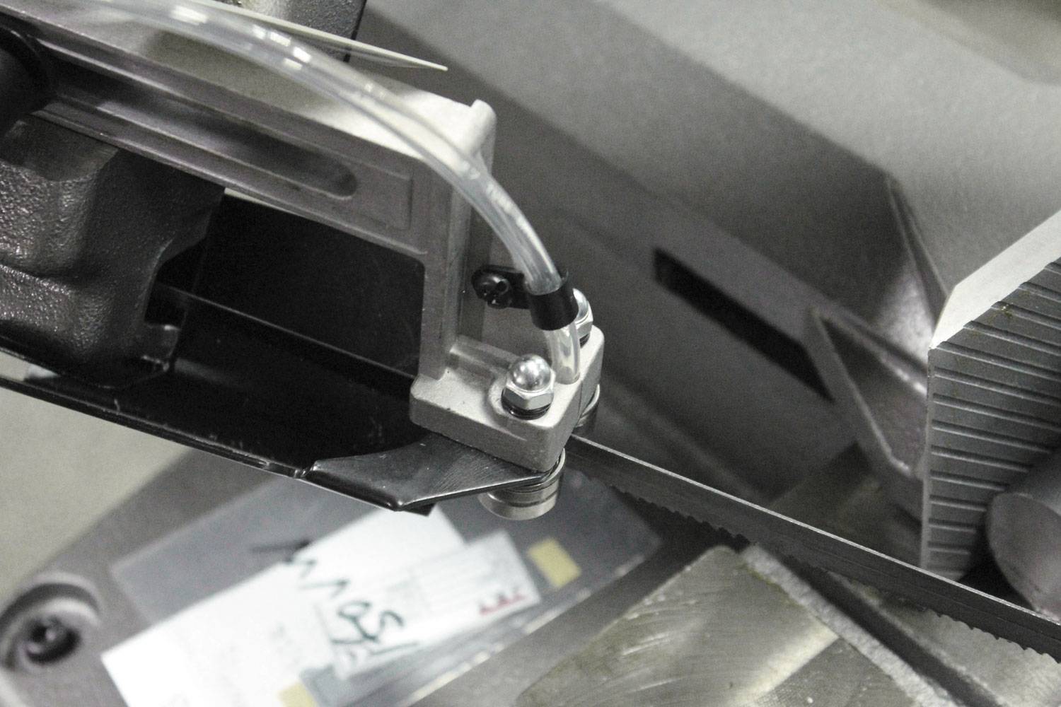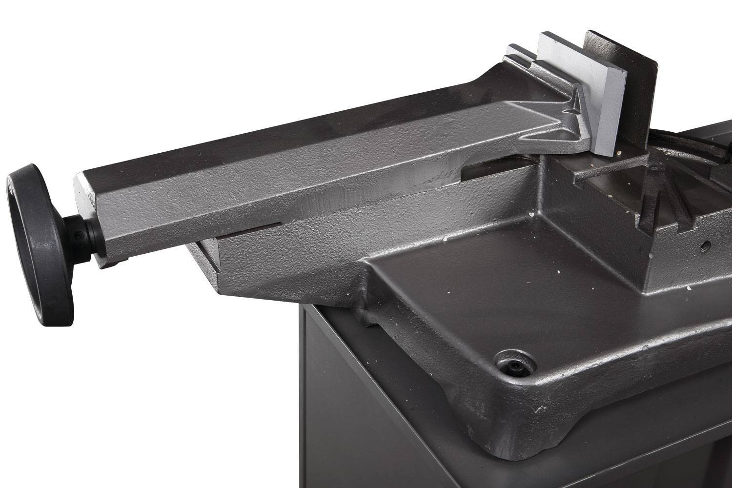 Станок поставляется на тумбе, также в комплект поставки входит система подвода охлаждающей жидкости в зону резания. Плавная регулировка скорости вращения полотна позволит подобрать оптимальный режим резания, а угол поворота пильной рамы на 60 градусов позволит увеличить гамму обрабатываемых изделий. Станок подключается к бытовой сети 220 В и может быть установлен как на выездной площадке, так и в гараже. Данный станок с лёгкостью справится с заготовкой 150 мм в диаметре, а СОЖ позволит продлить Вам срок службы полотна.