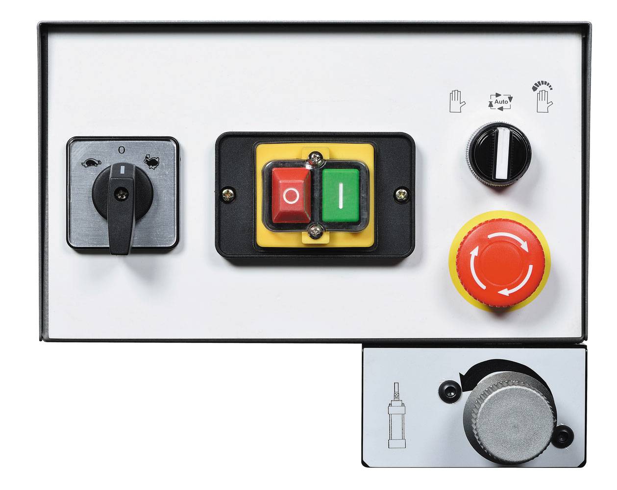 - Ленточнопильный станок может работать в ручном режиме, а также в режиме пиления в цикле. Подъем пильной рамы осуществляется вручную, а пиление происходит автоматом до отключения вращения полотна после окончания пиления. Плавная регулировка скорости опускания пильной рамы позволит подобрать оптимальный режим резания.