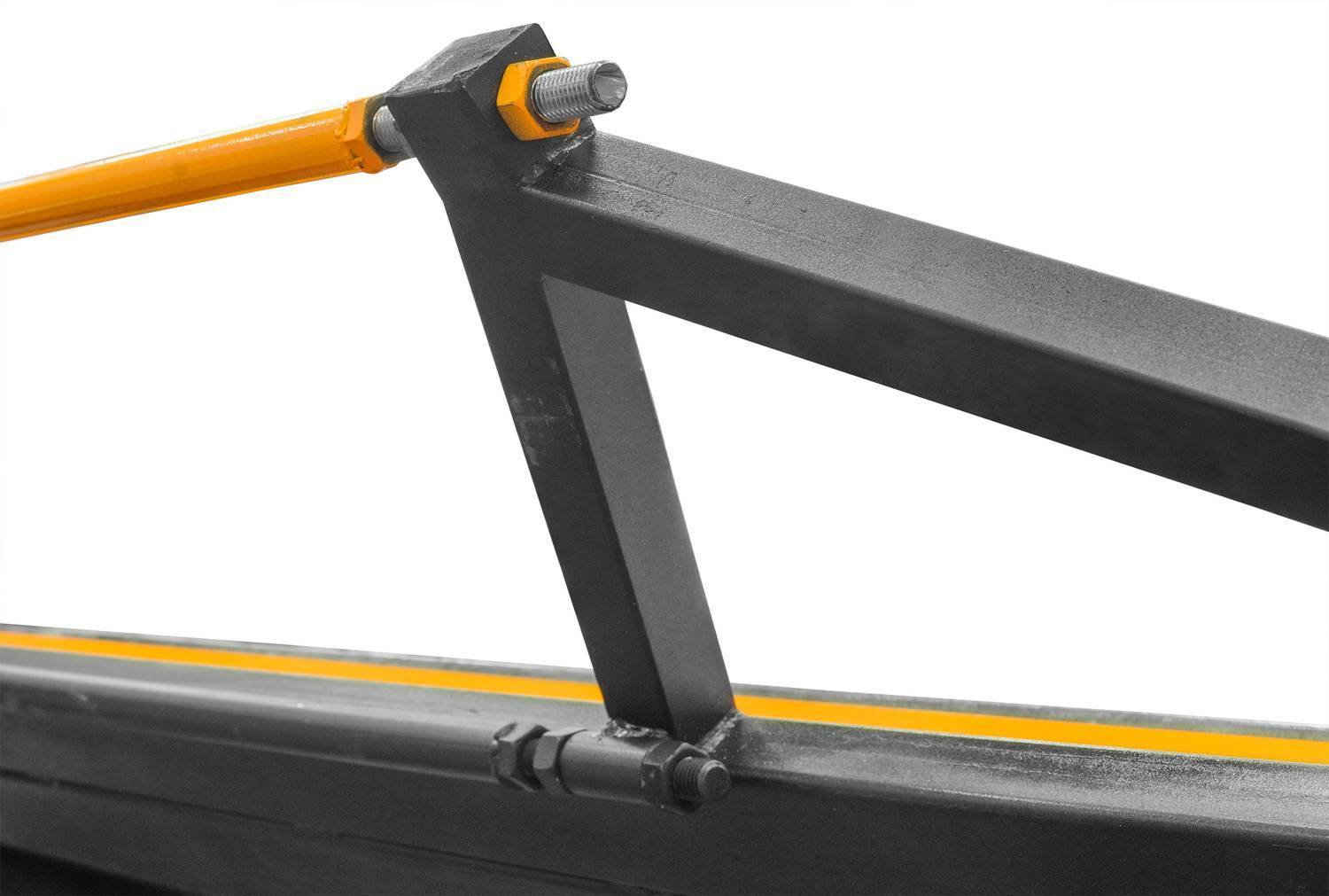 Верхняя прижимная балка оснащена газовым амортизатором (1шт) – что так же уменьшает нагрузку и облегчает работу оператора, как и в случае с гибочной балкой (стандартной комплектации). |