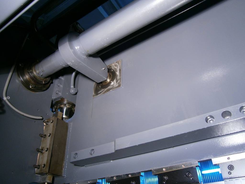 Листогибочные прессы серии HPJ имеют жесткое (через трубчатый торсион) соединение двух силовых гидроцилиндров для синхронизации их работы. Эта схема проста, применяется многими мировыми производителями листогибочных прессов уже несколько десятков лет и является недорогим и надежным средством для обеспечения точности работы станка.