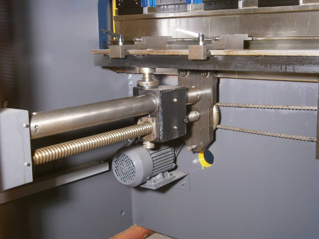 Станок оснащен двухосевым ЧПУ E22. Управление по оси Y осуществляется ЧПУ путем задания положения механического упора, находящегося в гидроцилиндре. Это обеспечивает высокую точность и стабильность результата. Управление по оси X также осуществляется ЧПУ, за что отвечает привод на базе мотор-редуктора и высокоточной ШВП с направляющими и датчиком обратной связи. Непосредственное управление приводами по осям производится частотным преобразователем.