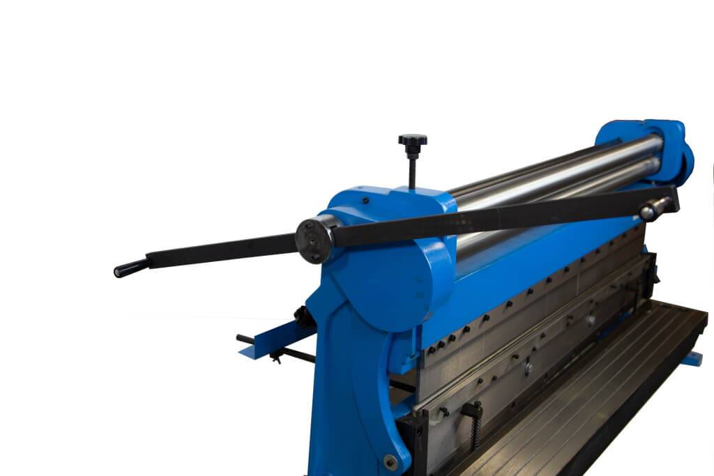 Регулировка толщины металла производится подъёмом/опусканием верхнего вала при помощи звездообразной рукоятки.