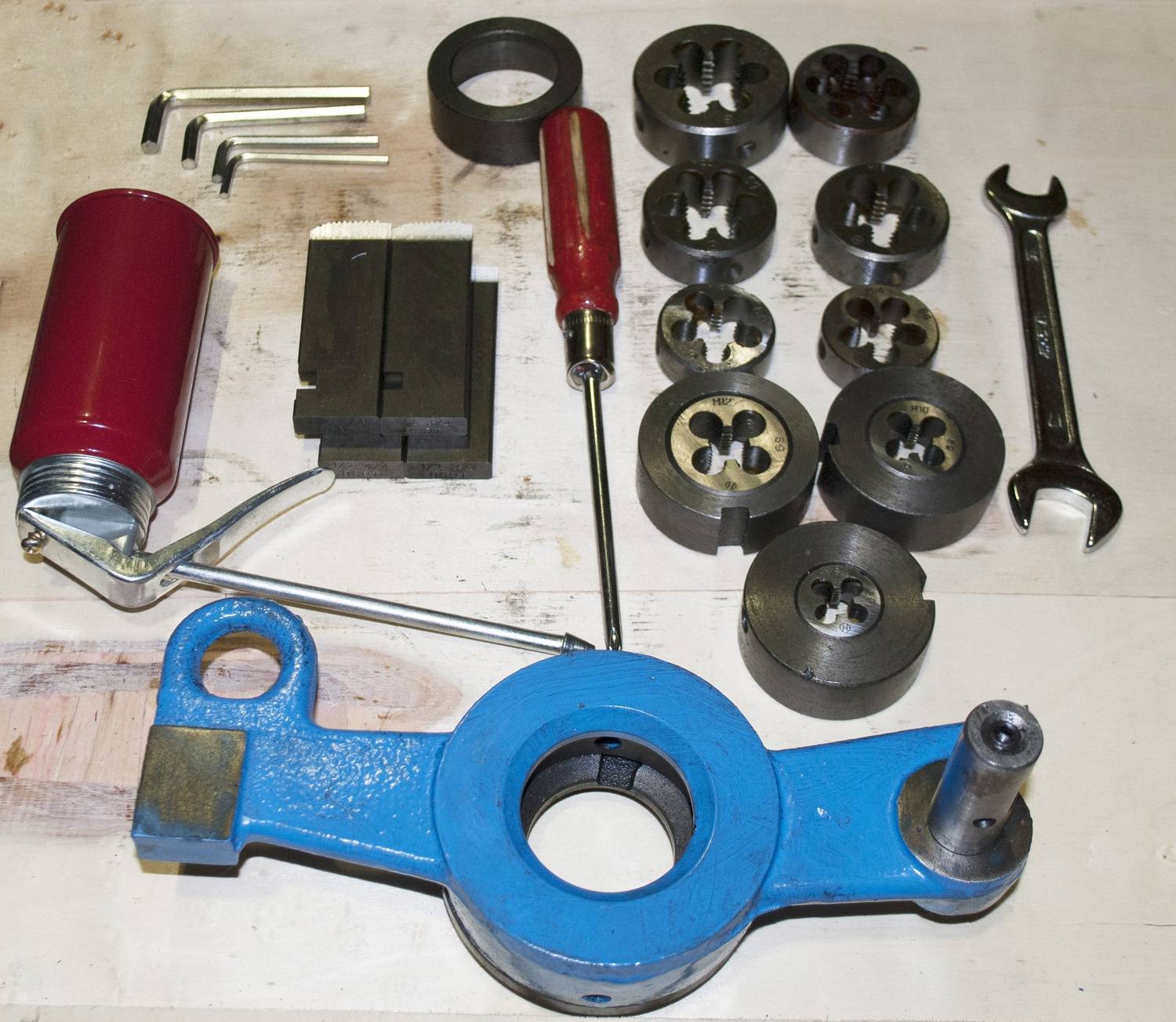- Комплект резцов 1/2″ - 3/4″ (на станке) и 1″ - 2″(в комплекте) - 2 к-та.