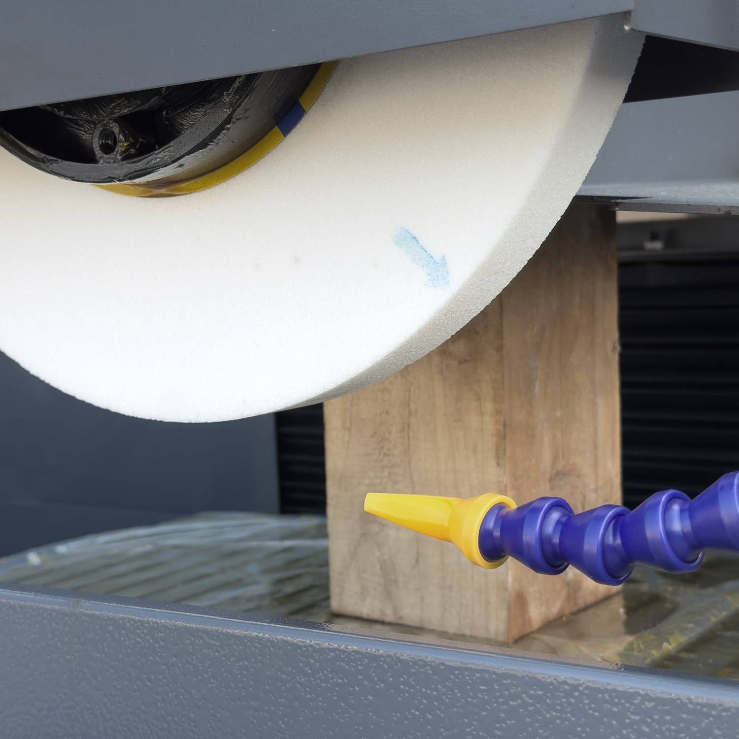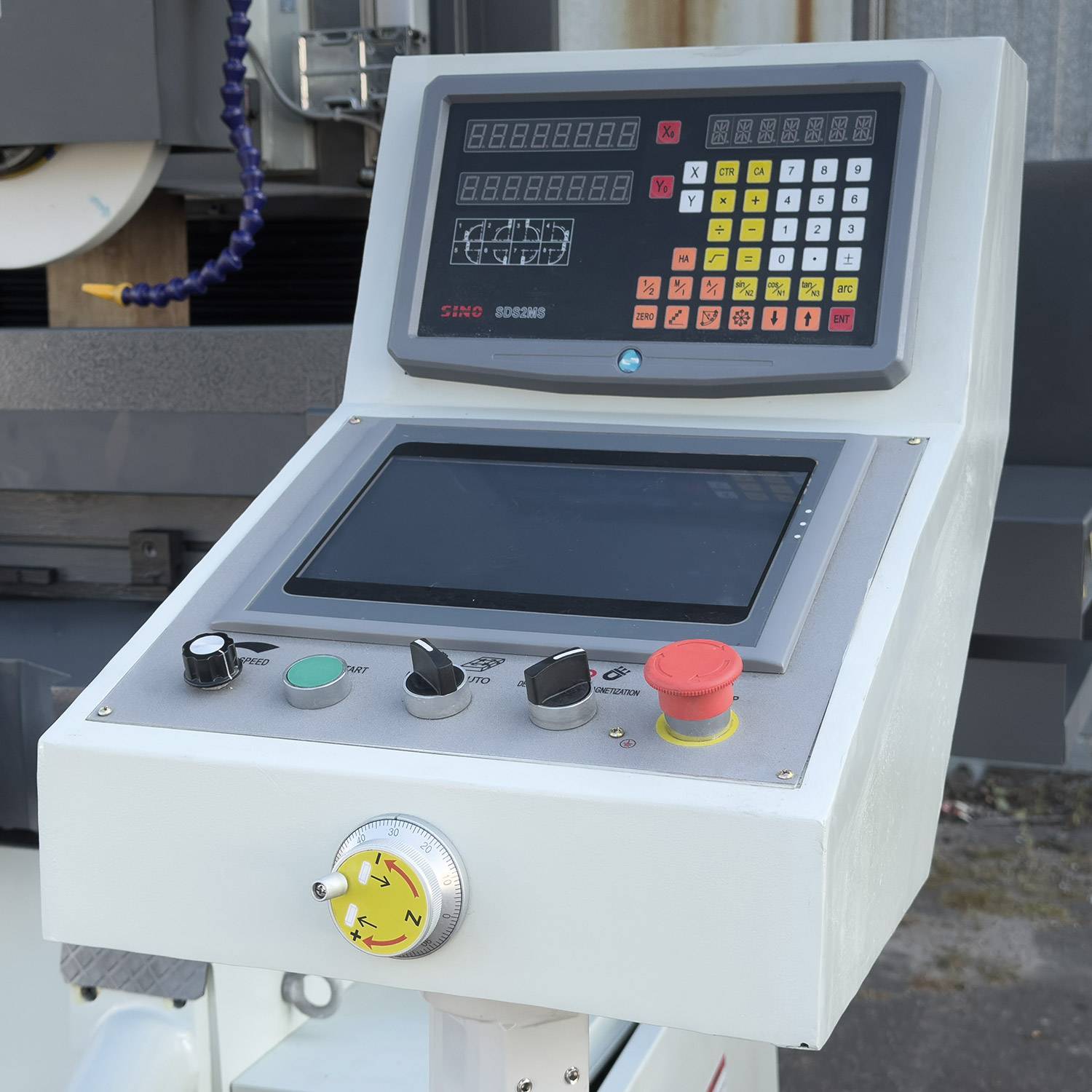 ШВП вертикального перемещения шлифовальной головки и поперечного перемещения стола соответствуют классу оборудования высокой точности. Автоматическая система смазки направляющих и винтовых пар облегчающая обслуживание станка. На модели используется замкнутая система охлаждения с отстойником для абразивной пыли и галогеновая лампа освещения зоны шлифовки.