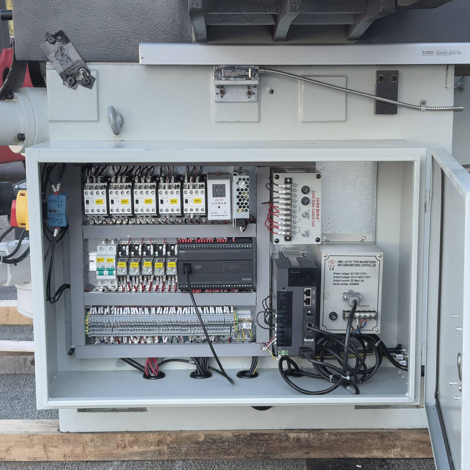 ШВП вертикального перемещения шлифовальной головки и поперечного перемещения стола соответствуют классу оборудования высокой точности. Автоматическая система смазки направляющих и винтовых пар облегчающая обслуживание станка. На модели используется замкнутая система охлаждения с отстойником для абразивной пыли и галогеновая лампа освещения зоны шлифовки.