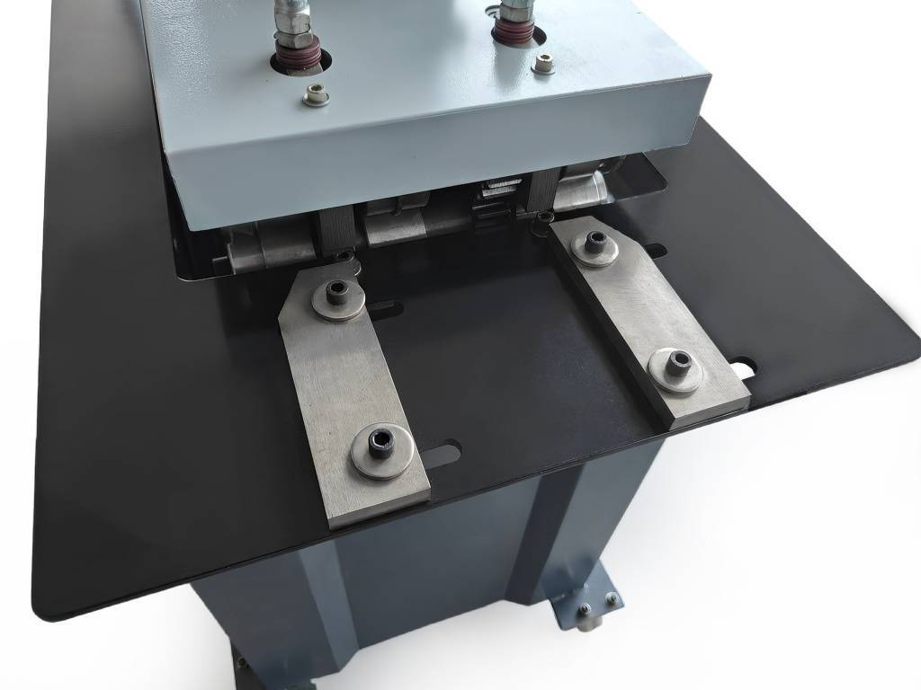 В верхней части станка установлена обжимная головка, позволяющая выполнять отбортовку прямоугольных кромок заготовки для формирования угловых соединений. |