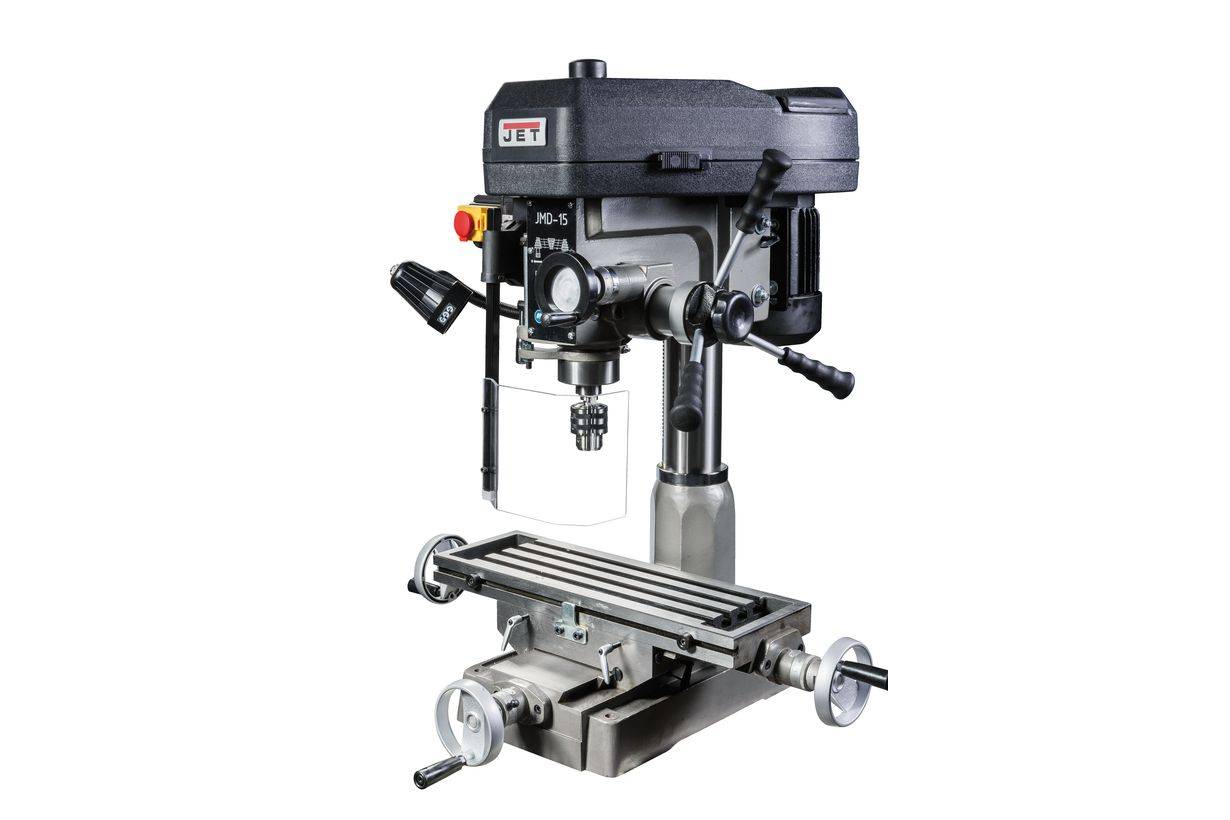 Сверлильно-фрезерный станок JMD-15 представляет собой универсальный тип станочного оборудования, выпускаемого компанией JET. Модель рассчитана на выполнение полного спектра фрезерных и сверлильных работ, нарезания резьбы, выполнения других технологических операций. Оборудование разработано для индивидуального использования, пригодно для производственного цикла. Мощный двигатель и сама конструкция станка рассчитаны на длительные режимы обработки. Станок имеет мощную литую станину из серого чугуна. Массивная стойка дополняет прочность и устойчивость всей конструкции. Особенностью модели JMD-15 является наличие механизма поворота фрезерной головки на 360 0, облегчая технологические манипуляции в процессе обработки заготовок. Станок оснащен функцией контроля над глубиной сверления, повышая качество обработки и производительность.