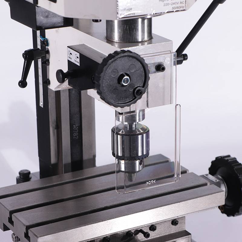 В данной модели предусмотрена тонкая подача шпинделя и регулировка глубины сверления. На станке можно выполнять сверление, фрезерование и другие операции обработки осевым режущим инструментом.