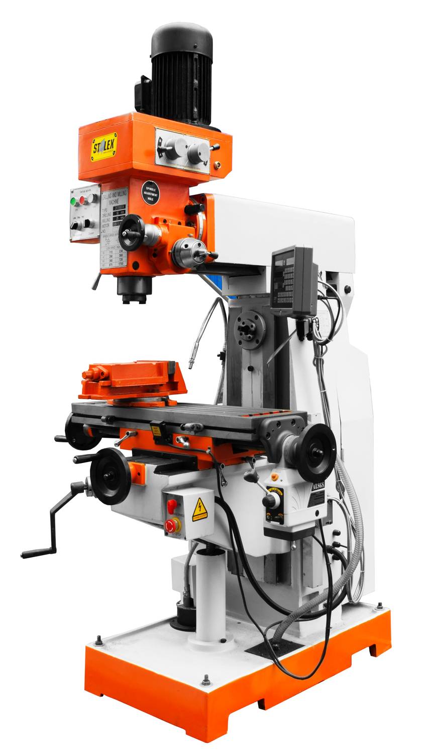 STALEX ZX7550CW - сверлильный агрегат многопрофильного использования, предназначенный для выполнения фрезеровочных, сверлильных, зенкеровальных и других работ. Модель оснащена асинхронным двигателем с электроприводом, тисками для фиксации заготовок. Верхняя часть разворачивается на 180 гр., рабочий стол перемещается в трех направлениях (автоматически). Для удобства оператора предусмотрен прибор с цифровой индикацией.