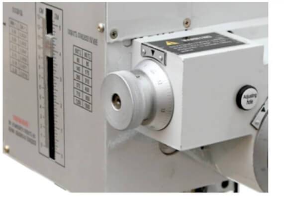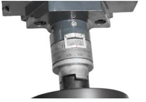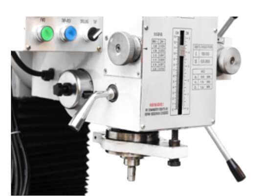 Маховик микрометрической подачи вынесен на фронтальную часть фрезерной головки и снабжен нониусом.