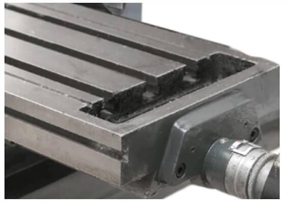 Крестообразный стол перемещается по направляющим типа "ласточкин хвост", регулируемые клиновыми планками. Стол имеет Т-образные пазы для монтажа на нем вспомогательных приспособлений. Все направляющие защищены и оснащены пресс-масленками.
