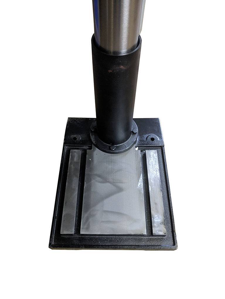 Станок установлен на мощное чугунное основание, на котором так же есть пазы для крепления заготовок и оснастки. Основание крепится к полу с помощью анкерных болтов.