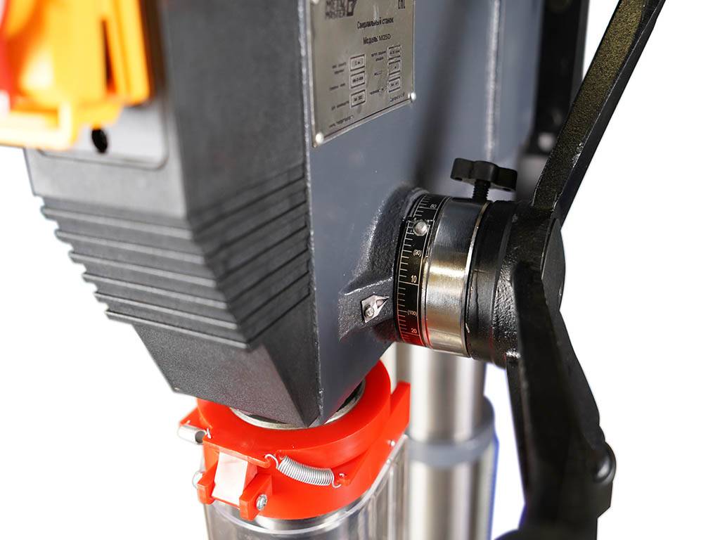 Станок Metal Master M25D имеет возможность перемещения сверлильного стола по оси Z при помощи зубчатой рейки и вращения рукоятки.