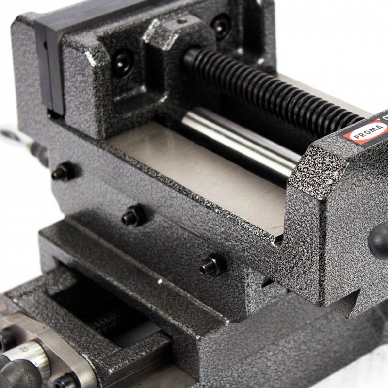 Крестовинные тиски PROMA KS-125P 25300104 устанавливаются на станок и служат для надежной фиксации заготовки. Губки высотой 50 мм гладко отшлифованы, что исключает возможность повреждения поверхности обрабатываемой детали. Поперечный / продольный сдвиг - 150 мм.