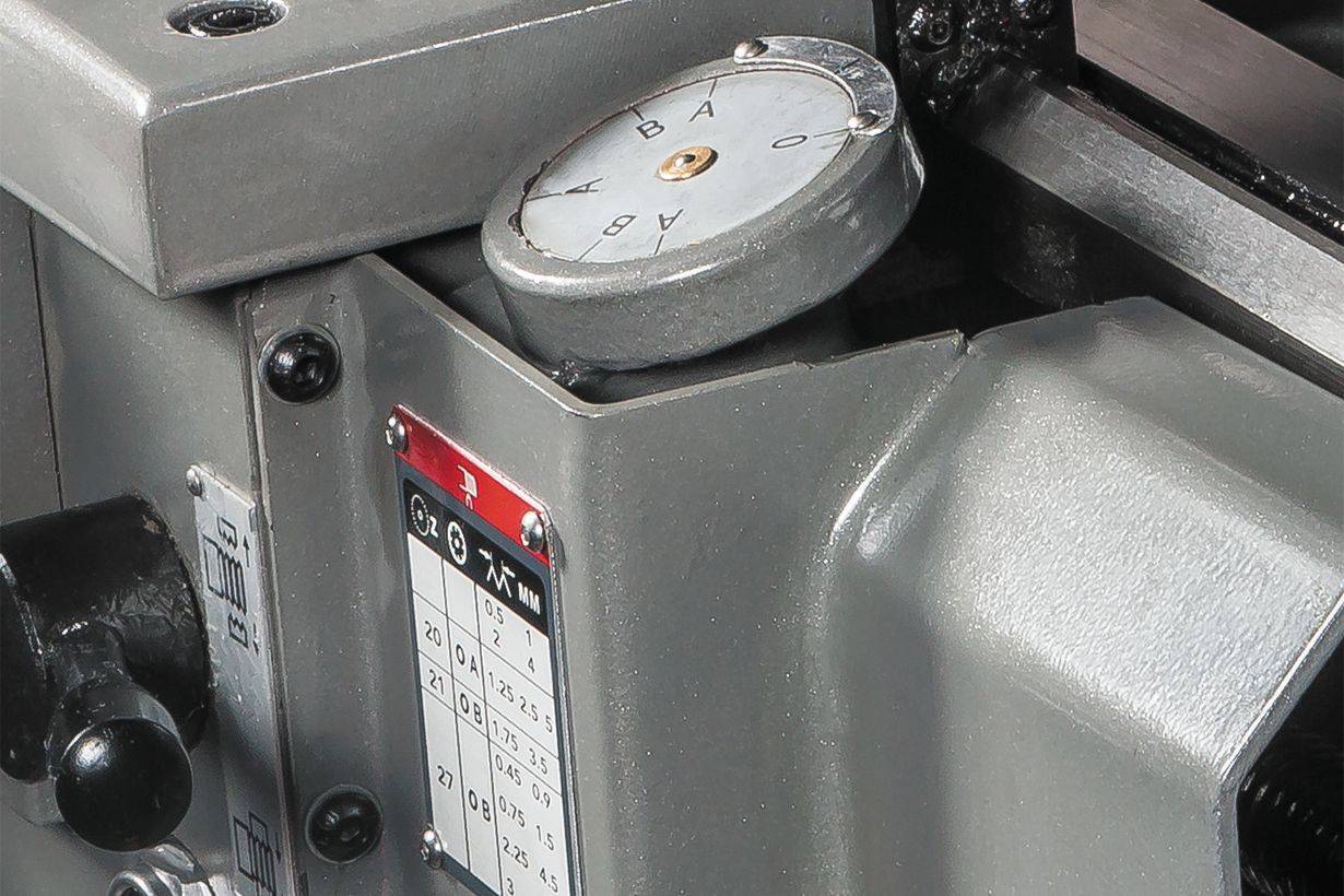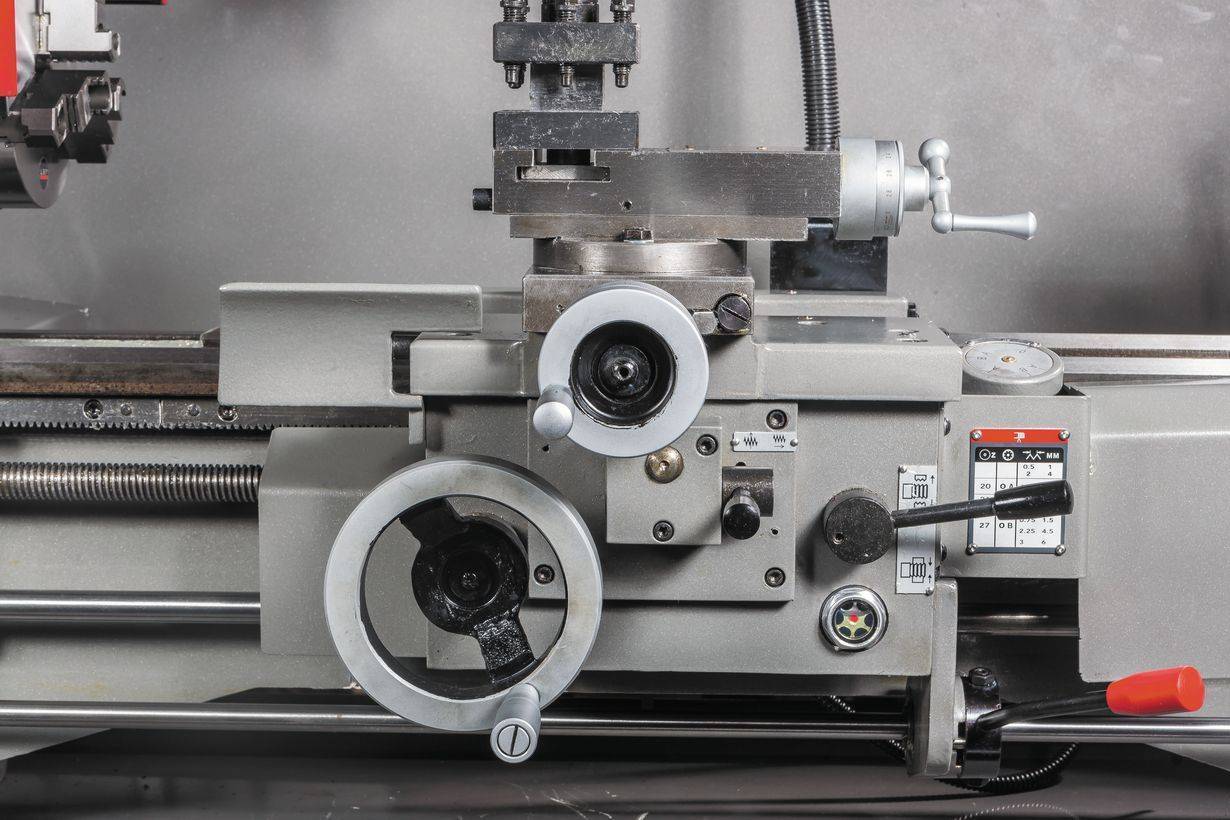 Следуя стандартам качества, компания JET оснащает свои токарные станки, включая и GHB-1330A, закаленными и тщательно отшлифованными направляющими станины, что повышает точность обработки и увеличивает срок службы оборудования. Шестерни передней бабки также закалены и отшлифованы. Их придется менять только лишь при переходе с нарезания метрической резьбы на дюймовую. С целью обеспечения непрерывного охлаждения, снижения уровня шума и увеличения ресурса механизм привода шпинделя помещен в масляную ванну. Станок оснащен механизмом автоматической подачи продольного и поперечного суппорта, а также регулируемой в поперечном направлении задней бабкой для обточки конических заготовок. Как и все станки этой линейки, GHB-1330A построен по двухвинтовой схеме: ходовой винт отвечает за резьбу, ходовой вал, отвечает за точение в автоматическом режиме. Также предусмотрен толчковый режим работы шпинделя для облегчения переключения режимов работы.