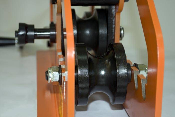 Конструкция трубогиба позволяет быстро и легко менять расстояние между валами для регулировки радиуса гиба. |