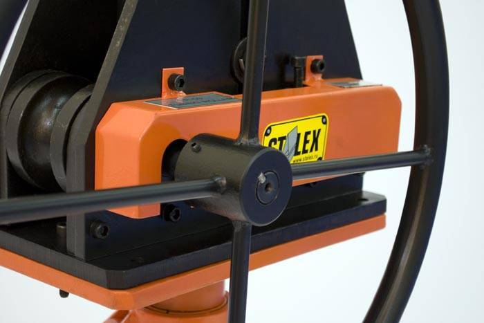 Поставляется в комплекте с регулируемыми вальцами для круглых труб – от 15 до 38 (стенка до 1,5мм) – один комплект роликов, минимальный радиус гибки 500мм