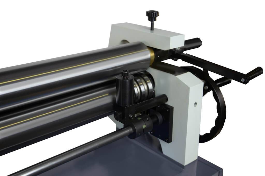Чугунная станина определяет высокую точность и долговечность станка. Валы изготовлены из высококачественной стали. Зажим листа между приводными валами осуществляется вручную. Также вручную подается вал, формирующий радиусный изгиб заготовки.